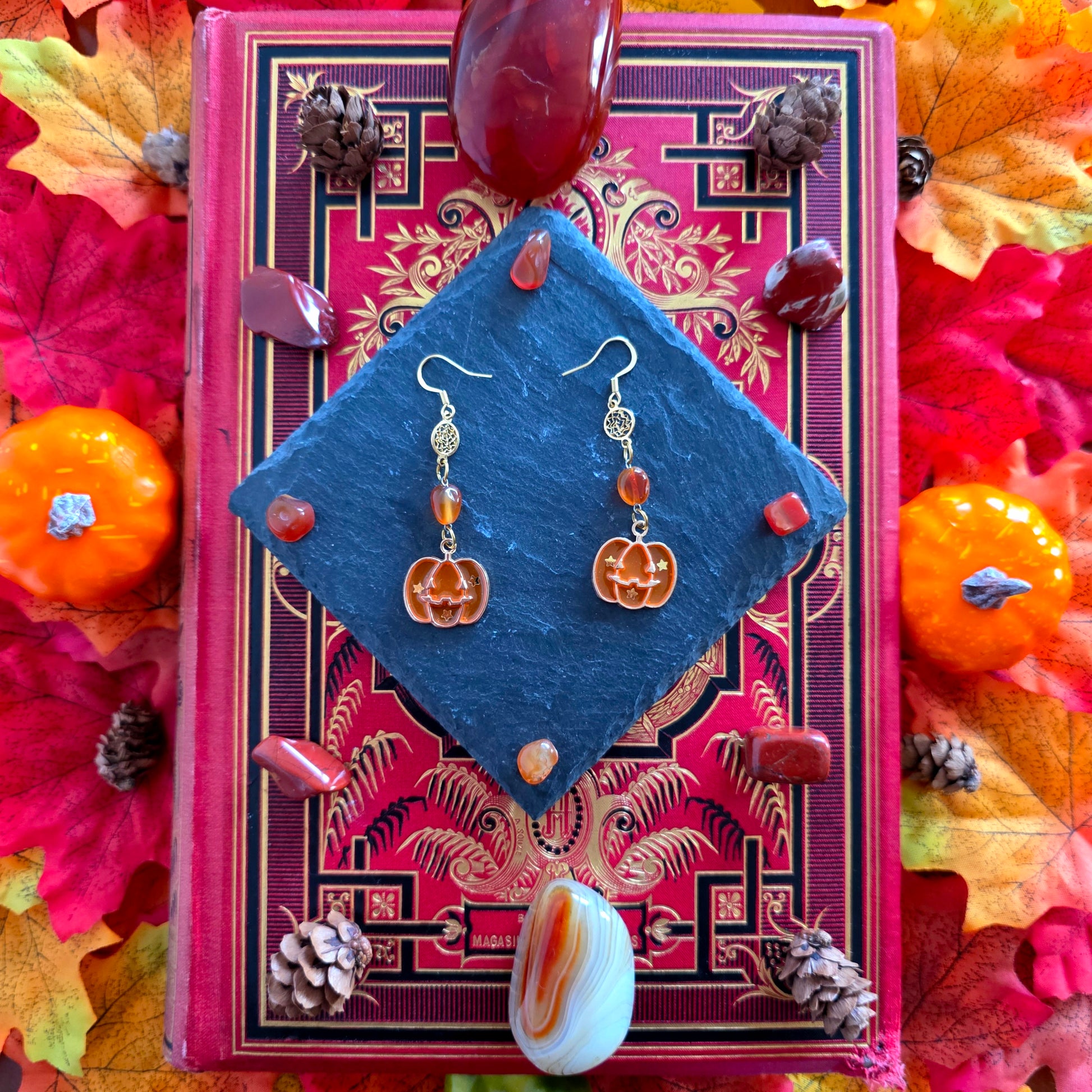 Samhain - Boucles d'oreilles citrouilles Halloween et cornaline - Les Rouages du Temps